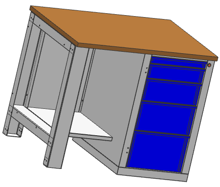 Верстаки имеют 3 вида исполнения опор для столешницы: