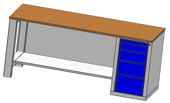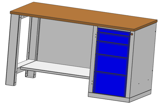 Верстаки ВУ1(столешница из фанеры) и ВУ2 (столешница из фанеры с накладкой из оцинкованной стали) предназначен для сборочных, слесарных работ, для хранения оснастки для станков с ЧПУ, а так же для учебных классов. Элементы верстаков покрашены в синий (RAL 5005) и серый (RAL 7035) цвета. По запросу элементы могут быть окрашены в любой цвет в соответствии каталога цветов RAL.